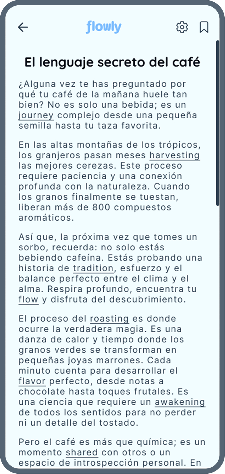 Flowly me ayudo a recuperar la constancia. En pocas semanas note mas fluidez al leer y mas confianza para hablar en clase.
